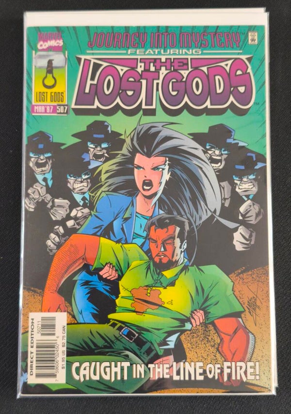 Journey Into Mystery #507 – The Lost Gods (Marvel Comics, mars 1997) - "Caught in the Line of Fire!" — Les Lost Gods font face à des ennemis humains. Une déesse tente de protéger un civil blessé dans ce numéro d'action.