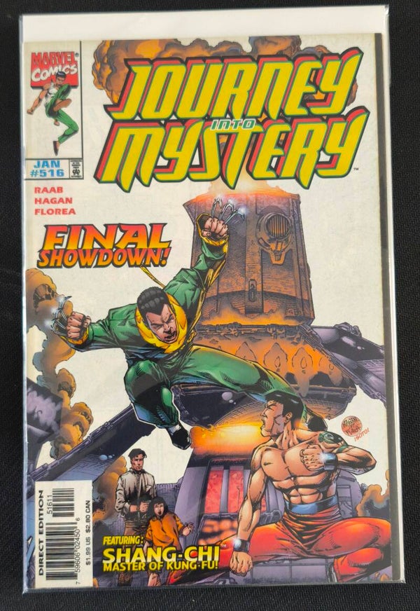 Journey Into Mystery #516 – Shang-Chi (Marvel Comics, janvier 1998) - "Final Showdown!" — Climax de l'arc Shang-Chi avec un affrontement décisif. Numéro d'action pure signé Raab, Hagan & Florea.