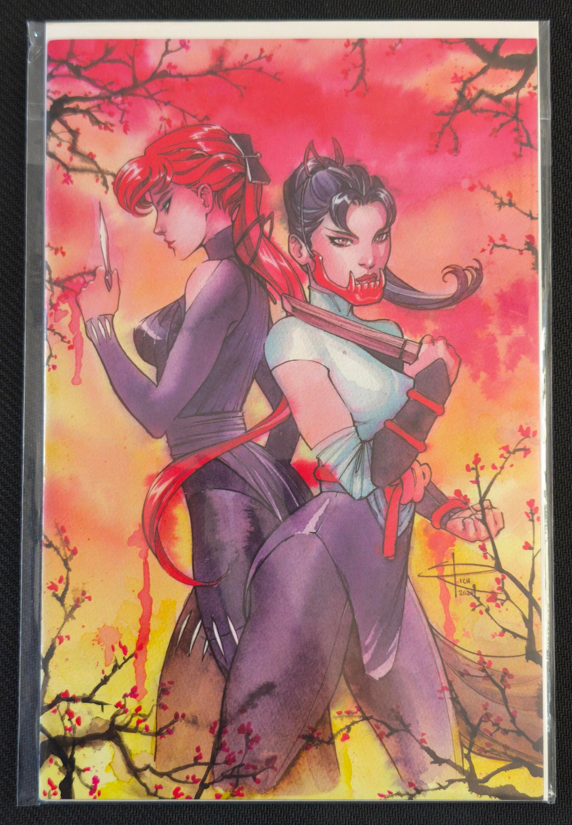 Demon Days: Mariko #1 s'inscrit dans la saga Demon Days de Peach Momoko, qui réimagine l'univers Marvel dans un Japon féodal fantastique et mystique. Ce numéro suit Mariko Yashida, figure tragique liée à Wolverine, réinterprétée ici comme une guerrière déterminée dans un monde peuplé de démons et de créatures surnaturelles. Le récit mêle folklore japonais, action et drame avec les illustrations envoûtantes caractéristiques de Momoko. La variant exclusive de Sabine Rich offre une couverture aquarellée somptueuse mettant en scène deux guerrières dans un décor de cerisiers en fleurs. Un numéro clé de l'une des meilleures mini-séries Marvel de ces dernières années.
